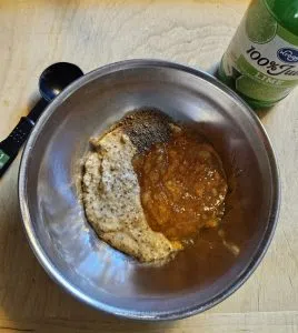 Combine the glaze ingredients in a small bowl. Score the ham in a cross hatch pattern on all sides (except the cut side if it’s a butt end) and put it in a large foil pan. If you have a cut end, put that side down.