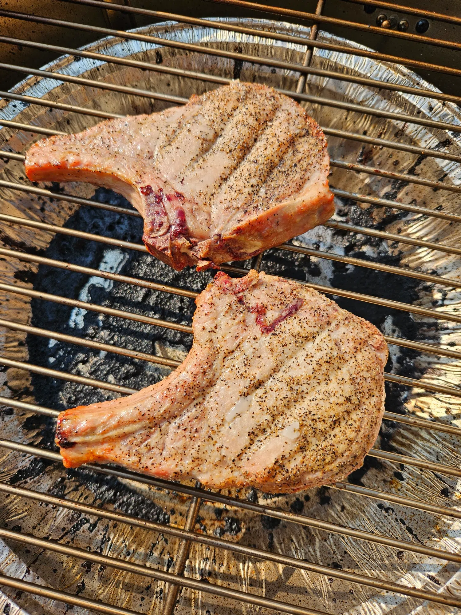 Grill your pork chops over medium high heat to proper doneness (145 degrees) seasoned with some salt & pepper.